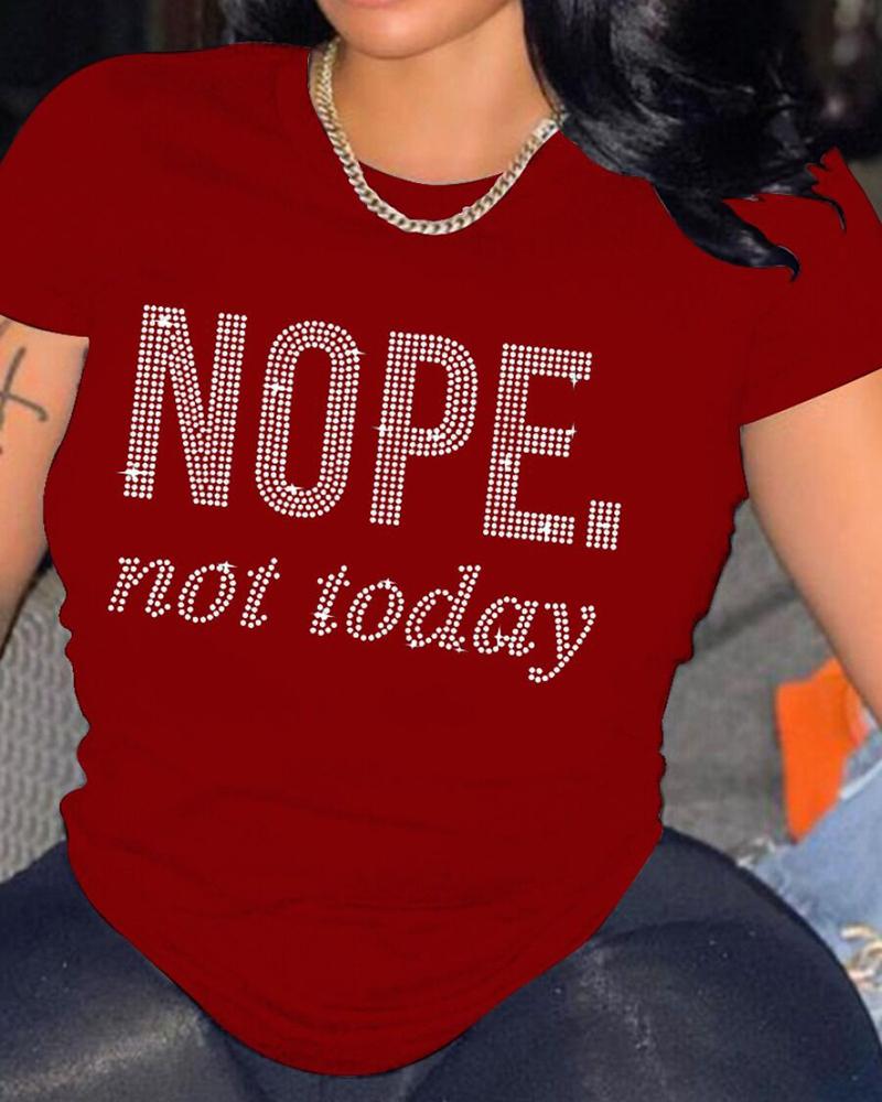 Short Sleeve Rhinestone Letter Pattern T-shirt, Red