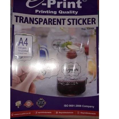 BUDAYAKAN MEMBACA SEBELUM MELAKUKAN PEMBELIAN [Perpack] Kertas Foto Eprint - A4 150Gsm - 10S [Transparant Sticker] EPRINT - Tranparant Sticker A4 150gsm - 10S Ukuran : A4 ( 210 x 297 mm ) Jenis : Transparant Sticker Jumlah dlm 1 pack : 10 lembar - Dapat digunakan pada semua printer inkjet - Resolusi tinggi hingga 2400dpi - Warna yang menarik dan cerah - Cepat Kering Harga tercantum adalah harga perpack - Fast respon jam kerja Senin - Jumat pukul 9.00 - 17.00, Sabtu pukul 9.00 - 14.00, Minggu atau hari libur Off - Mohon mencantumkan warna/gambar/varian pilihan dan cadangannya (jika ada) di kolom pemesanan ya. Jika tidak mencantumkan pilihan, maka akan kami kirimkan sesuai stok yang ready!!! - Pengiriman pada H+1 (malamnya). - Jika barang yang di pesan kosong dan tidak ada respon selama 1x24 jam maka akan di kirim secara random. - Periksa kembali NOMOR HP (TELP) & ALAMAT LENGKAP. Guna mempercepat dan memperlancar pengiriman. - BARANG YANG SUDAH DI BELI TIDAK BISA DI KEMBALIKAN. - Gudang kita ada di DKI Jakarta, Jawa Timur, Jawa Tengah, Jawa Barat dan lainnya. Jadi pengiriman tidak selalu sesuai alamat toko ini yaaa.. >>>> MEMBELI = SETUJU