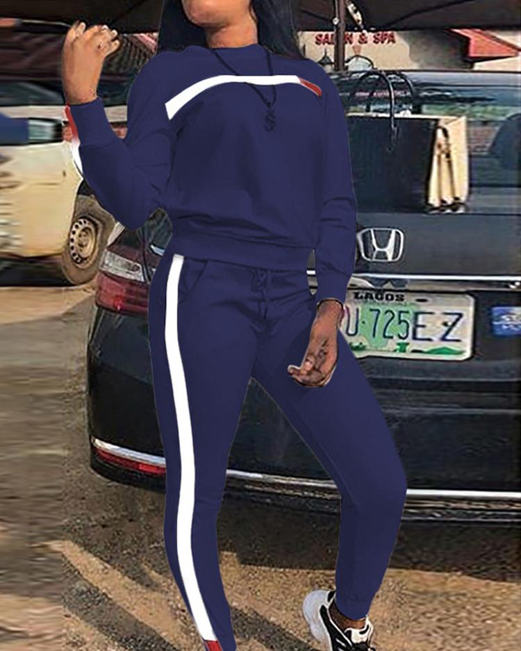 Side Stripes Long Sleeve Drawstring Tracksuits, Blue