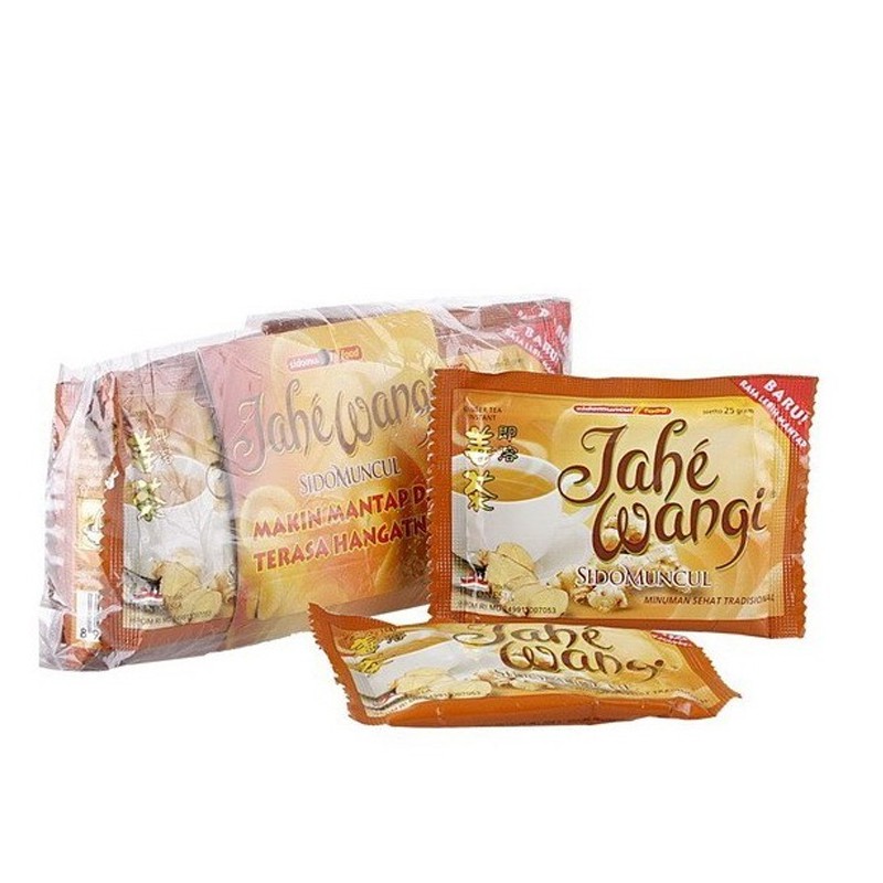 Sidomuncul Jahe Wangi Renceng (20s @ 25gr) merupakan minuman tradisional Jawa, yang biasa dikonsumsi pria Indonesia untuk menghangatkan dan mengembalikan energi tubuh. Mengandung bahan tunggal ekstrak jahe. Beberapa penelitian membuktikan bahwa kandungan gingerol pada jahe baik untuk kesehatan. Salah satu penelitian dilaksanakan di Universitas Odense (Denmark), yang membuktikan bahwa jahe sangat berguna untuk menghilangkan rasa sakit/nyeri dan gejala-gejala yang berhubungan dengan rematik.