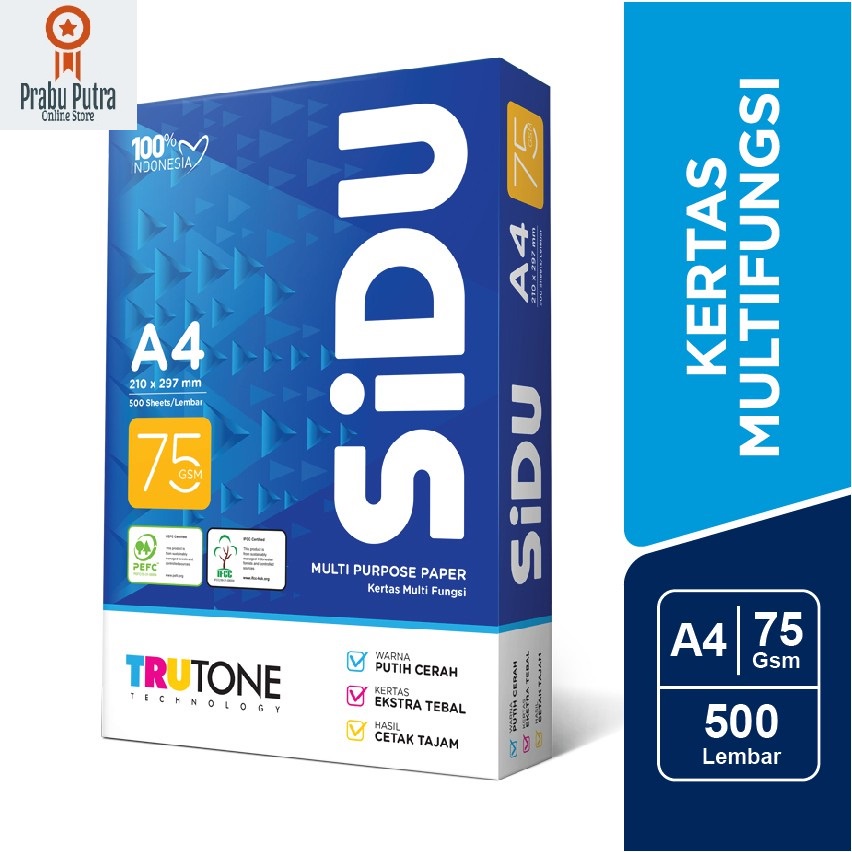 Sidu-Kertas HVS A4 75 Gram 1 Rim Sidu
