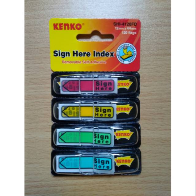 Deskripsi : Sticky Notes merk Kenko dengan bentuk Persegi bertuliskan "Sign Here", banyak digunakan untuk menandai Surat/Lembar Dokumen yang harus di tanda tangani. Berkualitas, variatif dan sangat murah.