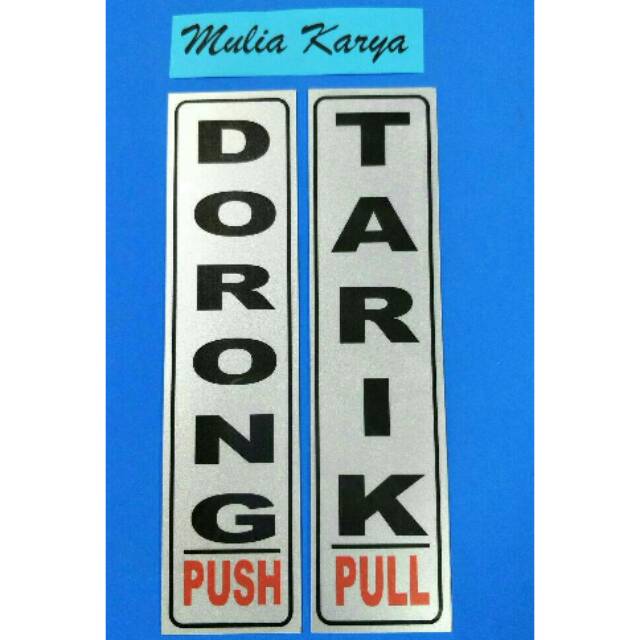 Sign label tarik dorong dijual per pcs. Tarik Atau Dorong ukuran 4.6 x 19 cm dgn perekat dibelakang background silver metalik.