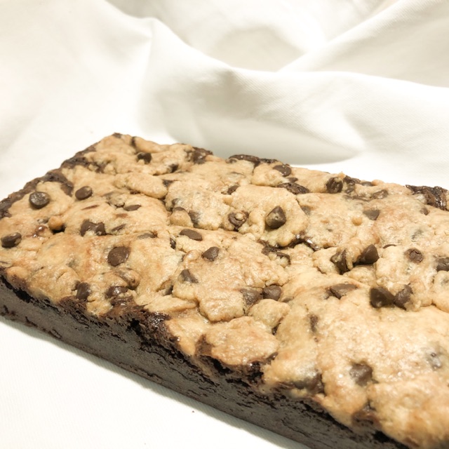 Moist and fudgy brownies with chewy chocolate chip cookies. You seriously can finished the whole pan by yourself