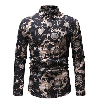 MOGU Men's Printed 2019 New Spring Autumn Long Sleeve Shirt Hawaiian Style Casual High Quality Dress Mens Shirts Comfortable