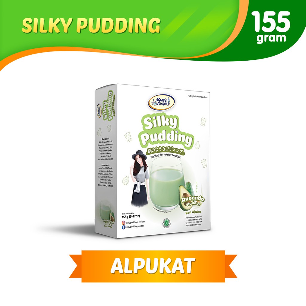 Mom's Recipe Silky Pudding Alpukat merupakan pudding dengan rasa alpukat yang mengandung susu skim dengan tekstur lembut dan dapat dinikmati di segala suasana.