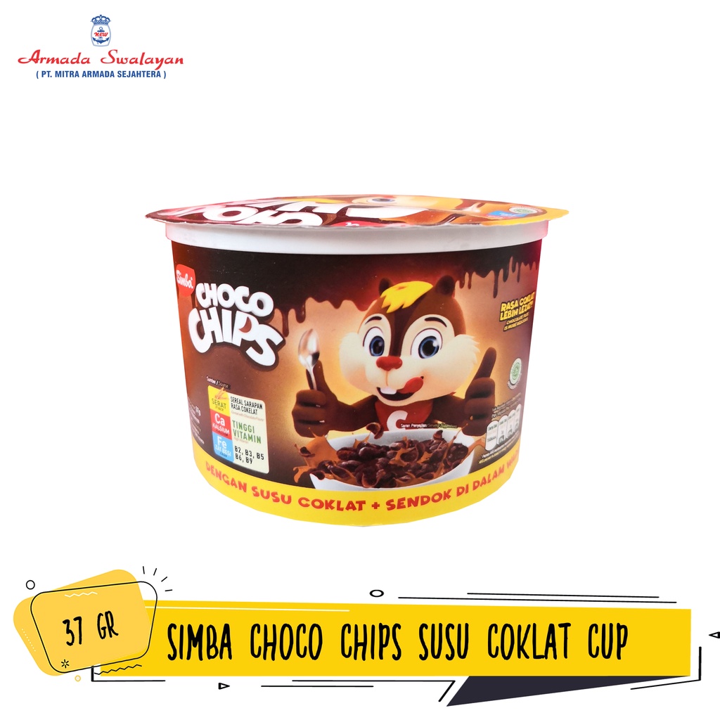 Simba Choco Chips Cup adalah sereal rasa cokelat berbentuk kerang (shell) yang terbuat dari bahan-bahan berkualitas yang mengandung Kalsium, Iron, Vitamin dan Serat. Dapat dicampurkan dengan susu untuk sarapan pagi atau dimakan langsung sebagai snack. Kini hadir dalam kemasan cup, dengan susu dan sendok di dalam wadah. Siap dimakan kapan saja dan di mana saja hanya dengan menambahkan air.