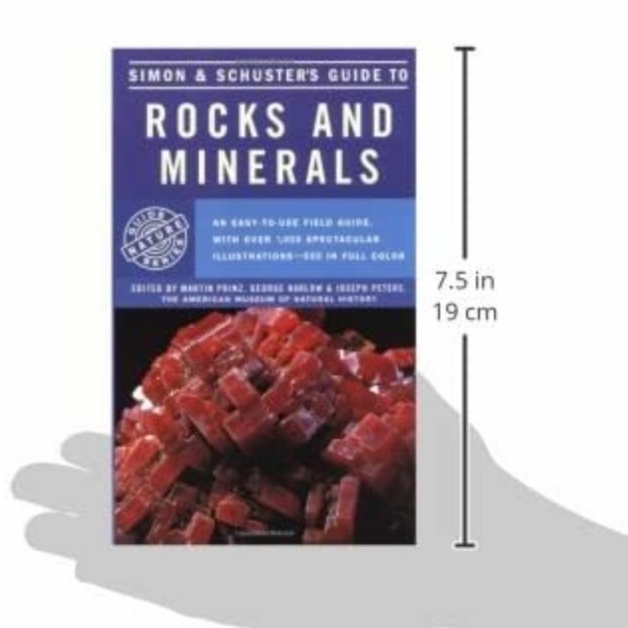 Practical, concise, and easy to use, Simon & Schuster’s Guide to Rocks and Minerals contains everything that the rock and mineral enthusiast needs to know. This field guide is divided into two large sections—one devoted to minerals and one to rocks, each prefaced by a comprehensive introduction that discusses formation, chemistry, and more. All 377 entries, beautifully illustrated with color photographs and helpful visual symbols, provide descriptions and practical information about appearance, classification, rarity, crystal formation, mode of occurrence, gravity of mineral, rock chemistry, modal classification fields, formational environments, grain sizes of rocks, and much more.