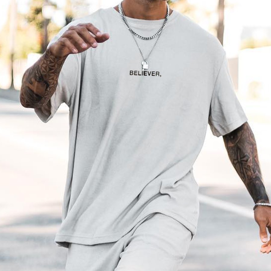 Simple "BELIEVER " Printed Men's Crew Tee