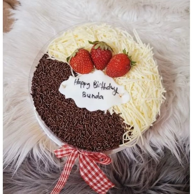 Cheese cake dengan topping keju / coklat dan hiasan simple..