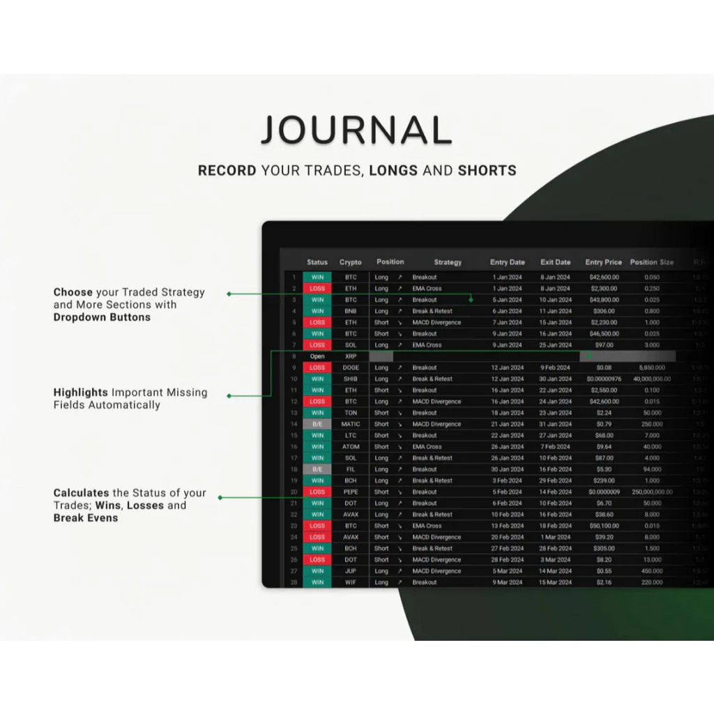 - Bagian Jurnal: Mencatat aktivitas perdagangan harian, termasuk titik masuk dan keluar, stop-loss order, dan ukuran posisi.