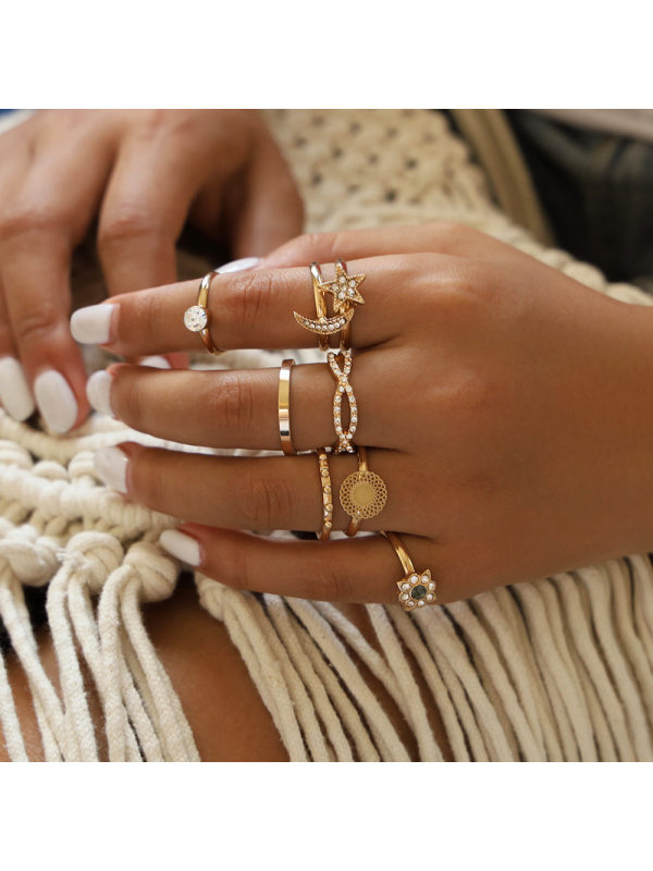 rings,simple geometric diamond ring set of 8