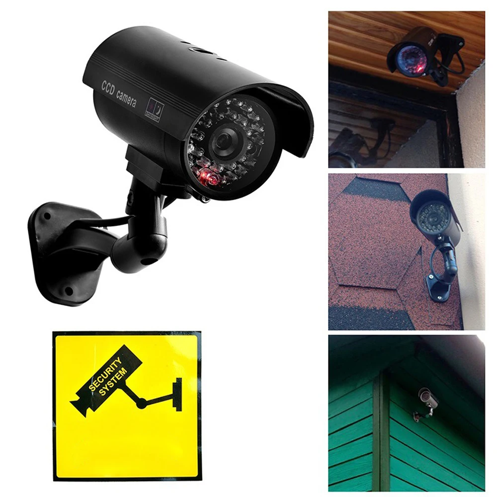Simulation Fake Camera Solar Power Dummy Camera Waterproof Outdoor Security CCTV Surveillance Dummy Camera Bullet With LED Light