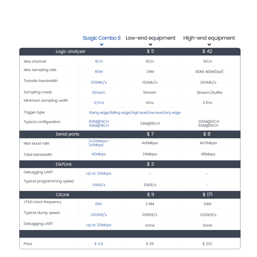 Sipeed logic Combo 8 S логический анализатор DAPLink CKLink отладчик инструмент 4 в 1 Многофункциональный максимальный 8 каналов логический анализатор