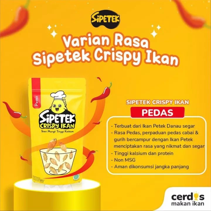 Sekarang ada crispy ikan sipetek lho! Olahan ikan yang digoreng garing dan disajikan dalam kemasan menarik serta praktis tingal makan.