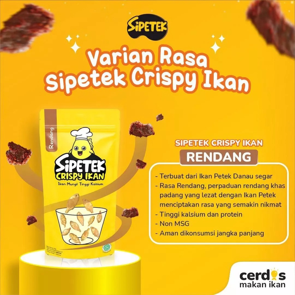 Sekarang ada crispy ikan sipetek lho! Olahan ikan yang digoreng garing dan disajikan dalam kemasan menarik serta praktis tingal makan.