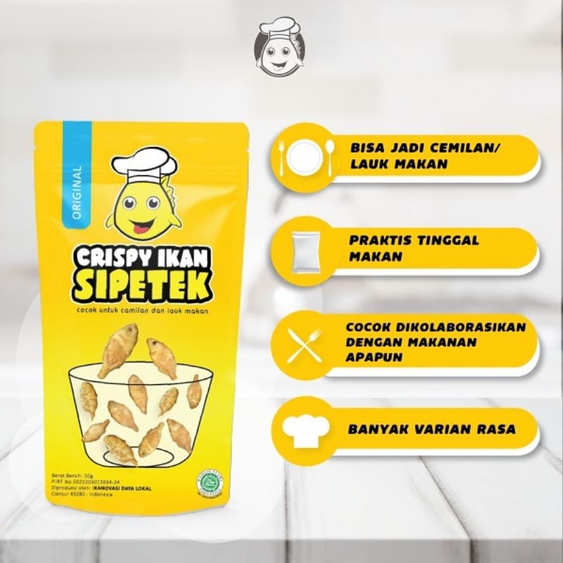 Sipetek Crispy Ikan ini merupakan ikan goreng yang renyah dan kriuk cocok untuk cemilan maupun lauk makan. Terbuat dari ikan petek danau yang memiliki kandungan kalsium dan protein tinggi, tentunya sangat baik untuk pertumbuhan dan tumbuh kembang anak Selain rasanya yang enak dan disukai