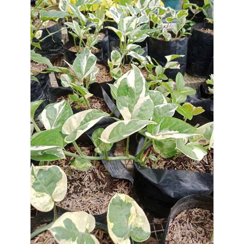 Daun kecil berbentuk hati tebal bercorak putih dan hijau