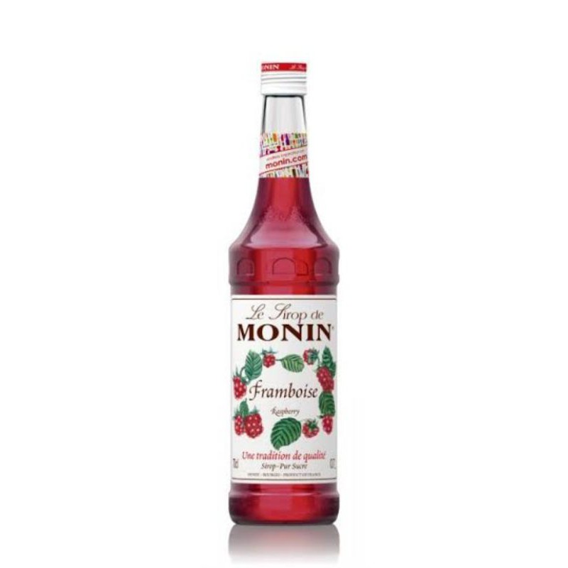 Sirup Monin Raspberry dalam kemasan botol kaca 700mL. Sirup premium dari Perancis.