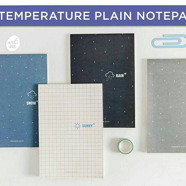 Buku tulis putih polos bernuansa cuaca seperti berawan, hujan, salju dan cuaca yang cerah. Buku ini cocok untuk dijadikan buku sketsa maupun catatan. Dijilid dengan lem sehingga tidak mudah lepas dan rusak.
