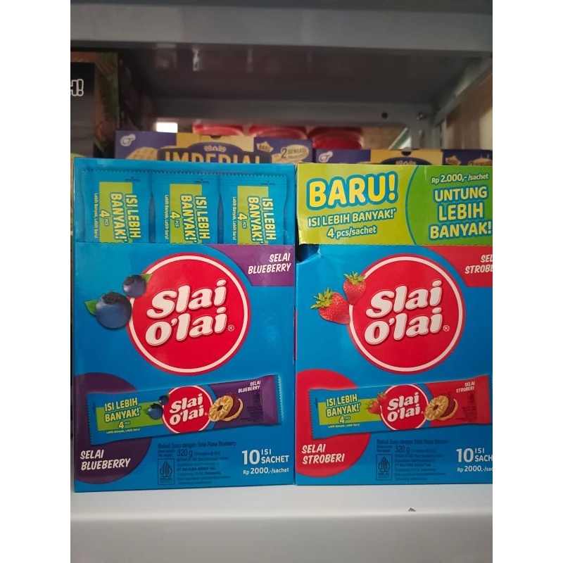 Biskuit sandwich slai Olai dengan cream bluberi dan stroberi,