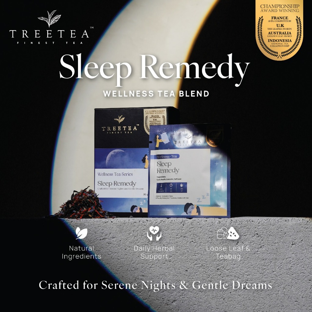 Nikmati tidur malam yang lebih tenang dan berkualitas dengan Treetea Sleep Remedy. Teh yang dirancang khusus untuk membantu merilekskan tubuh dan pikiran, mempersiapkan Anda untuk tidur yang nyenyak tanpa gangguan. Dengan bahan-bahan alami pilihan, Treetea Sleep Remedy adalah solusi tepat bagi Anda yang kesulitan tidur atau sering merasa gelisah di malam hari.