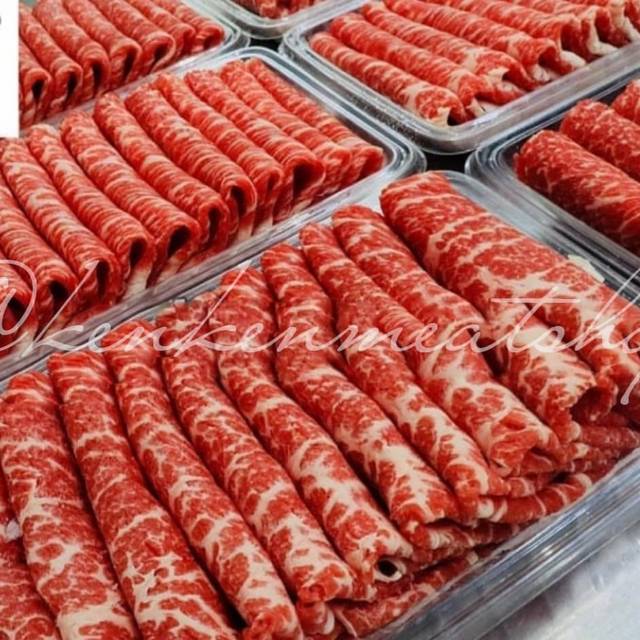 Daging sapi prime angus us bagian rib eye yang di cut slice tipis, sangat cocok untuk dimasak :