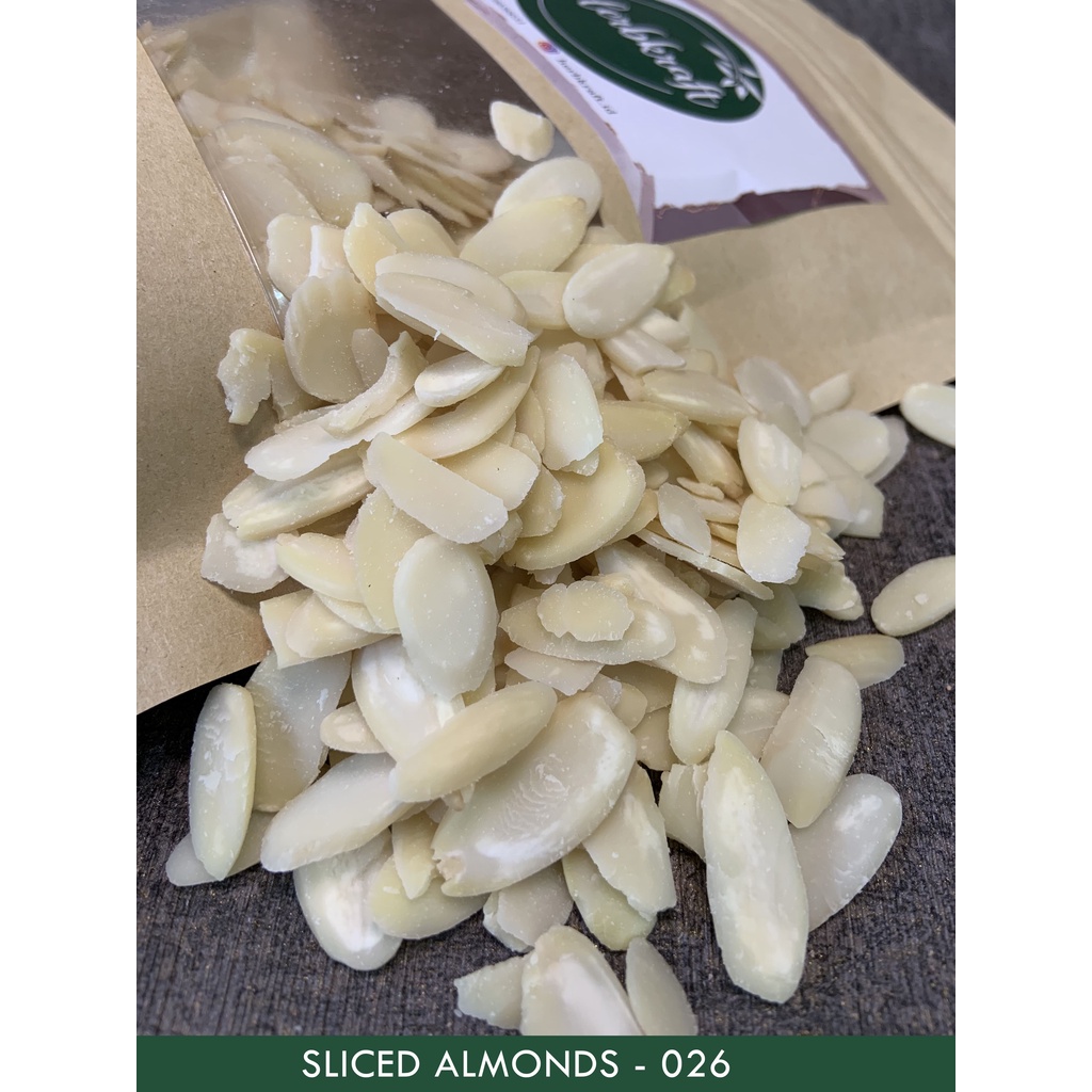 Sliced atau Irisan Almond memilki rasa seperti susu dan juga memiliki tekstur yang sangat renyah. Sangat ideal untuk digunakan dalam masakan dan juga sering ditaburkan diatas kue maupun es krim.