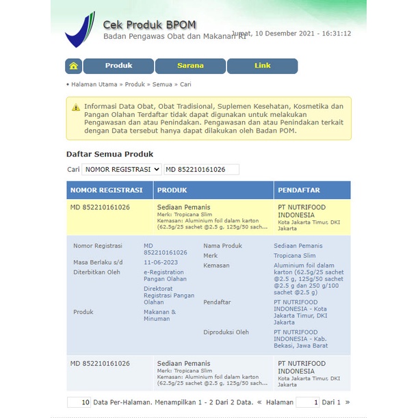 Diproduksi Oleh : PT Nutrifood Indonesia