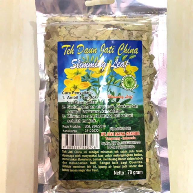 Teh daun jati china ini sebagai minuman teh sejak dulu gelah dipercaya oleh masyarakat lus untuk melangsingkan badan, menurunkan kolesterol, lemak dan membuang racun dalam tubuh, dan melancarkan BAB. sangat baik bagi obesitas, setelah minum teh ini buang air besar lancar dan tubuh terasa segar dan fresh.