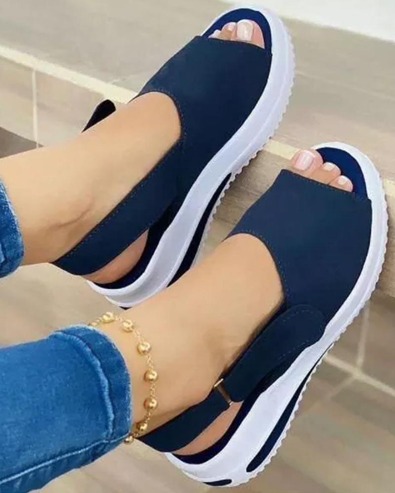 Slingback Peep Toe Platform Velcro Sandals, Blue
