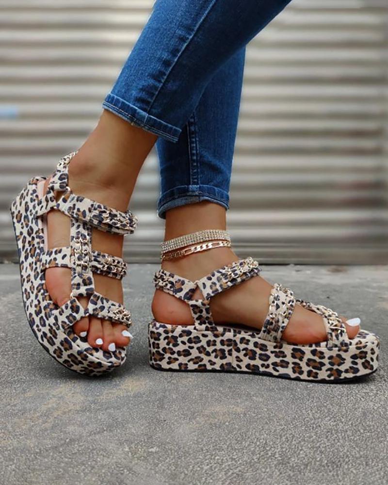 Slingback Round Toe Platform Sandals, Leopard