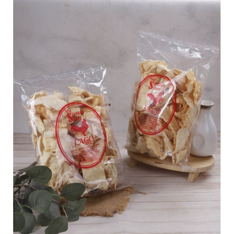 Slondok keripik cap Jago akan memanjakan lidah anda dengan kombinasi rasa manis, pedas, dan gurih tanpa bahan pengawet dan msg.