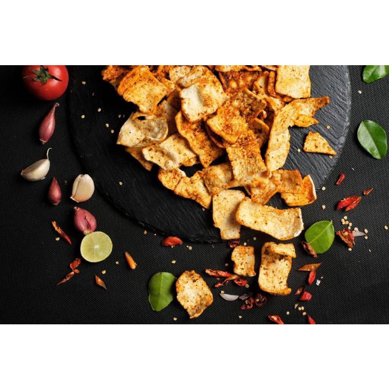 Kribo slondok yang digoreng menjadi kerupuk dengan taburan bumbu ciri khas yang dimiliki Kribo pedas daun jeruk