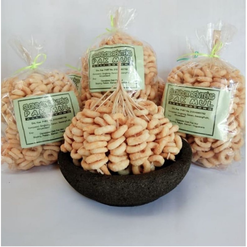 Slondok Renteng khas merapi . Makanan tradisional dari bahan baku singkong . Rasanya asin gurih cocok untuk camilan ,ataupun oleh oleh.