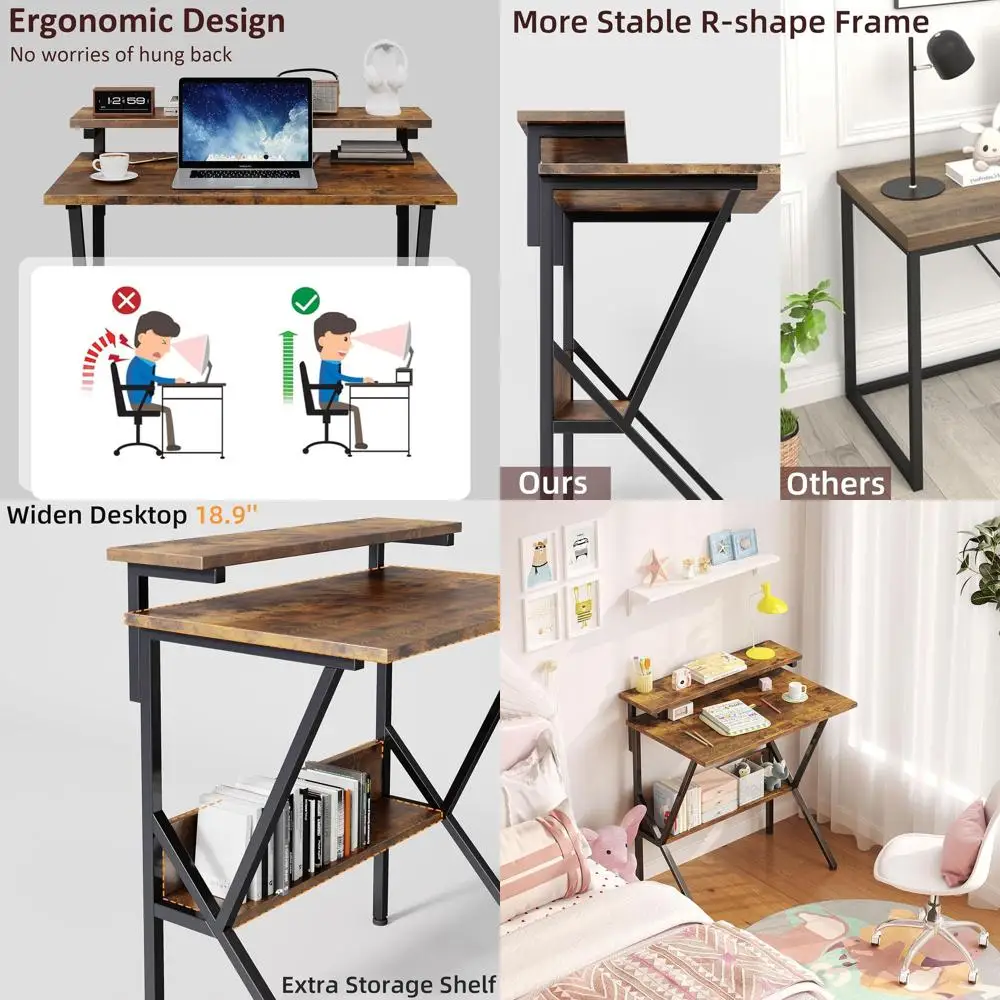 Small Desk, 27.5 Inch Small Computer Desk for Small Spaces, Computer Desk with Adjustable Monitor Stand, Compact Desk with Stora