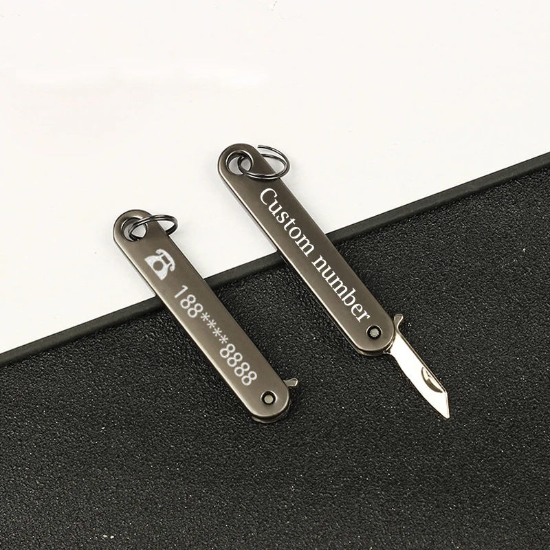 Small Mini Knife Keychain Personalized Lettering Numbers Car Key Holder Chain Men's Fashion Jewelry Keyring