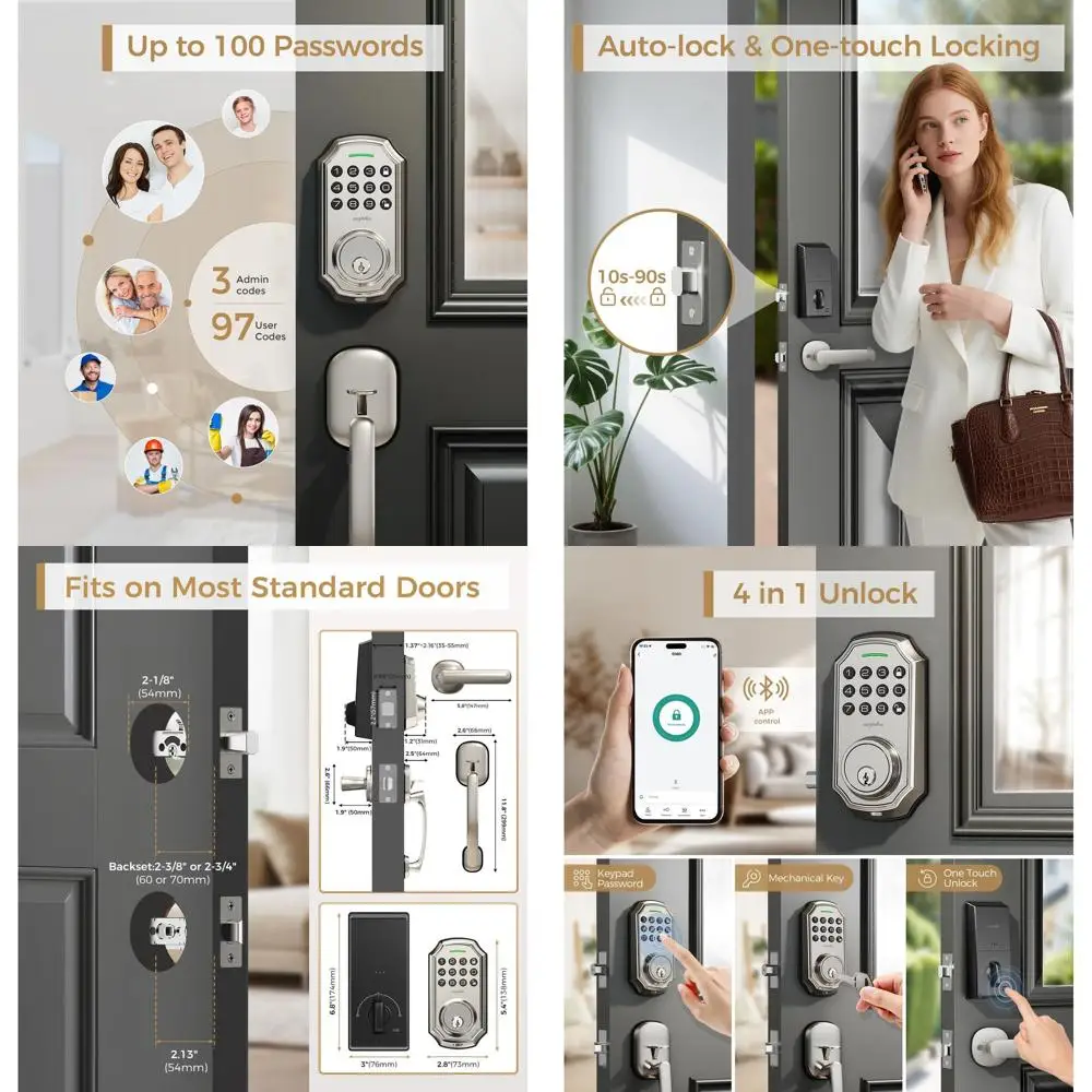Smart Deadbolt Door Lock with 2 Handles, App-Enabled, 100-Code Keypad, One-Time Codes, Auto-Lock and Anti-Peep, Easy Install for