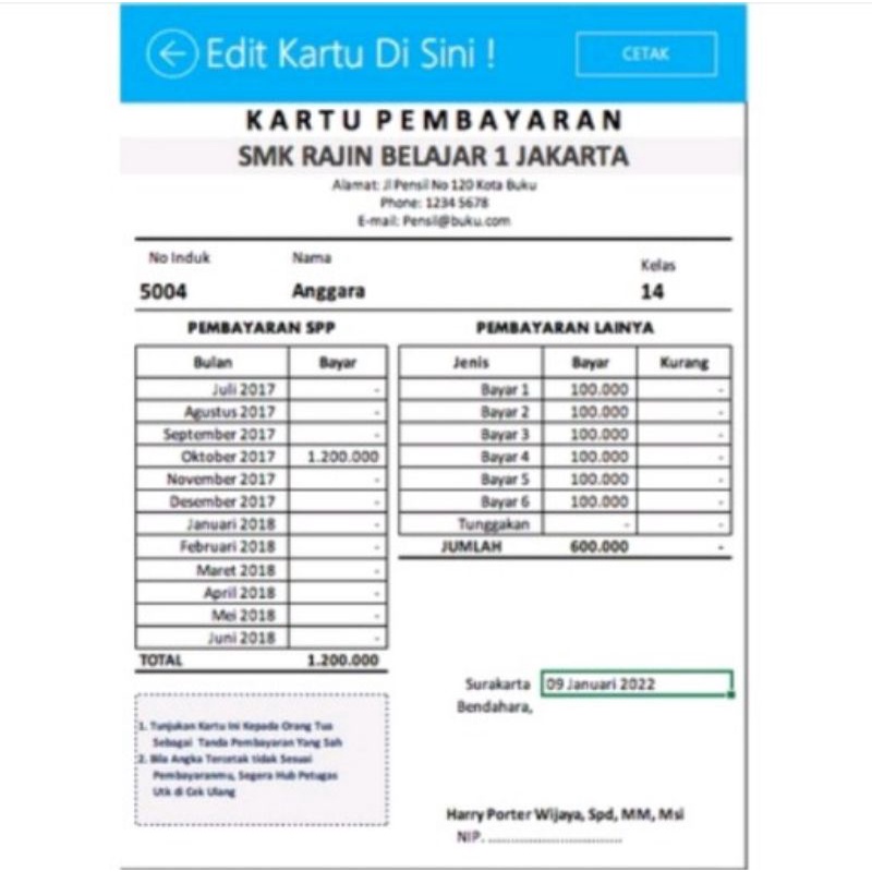 ✅ Aplikasi Excel Pembayaran SPP Siswa