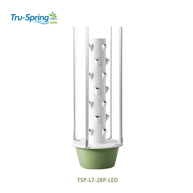 Smart Hydroponic Tower Growing System With Built-in LED Lighting For Home Balcony And Indoor Farming TSP-L7-28P-LED