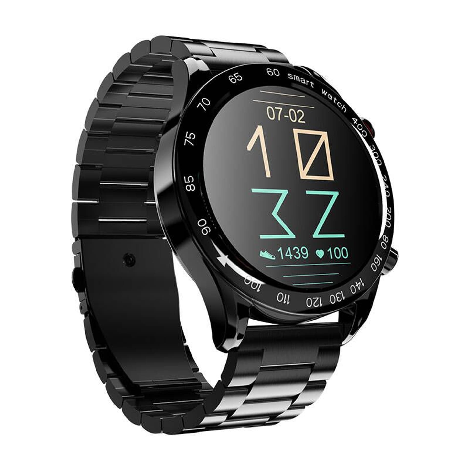 FutureGo Pro to kwintesencja luksusu. Smartwatch wykonany ze stali nierdzewnej wyróżnia się imponującą odpornością na użytkowanie i eleganckim designem. Żywotność akumulatora tego modelu sięga aż 20 dni, w czasie których urządzenie może monitorować jakość Twojego snu, częstotliwość bicia serca czy jakość treningów. Umożliwia odbieranie połączeń, wiadomości i powiadomień, a wszystko to w zachwycającym kolorystyką ekranie. Smartwatch FutureGo Pro został wyposażony w 1,32-calowy ekran TRUCOLOR GEN2, który dostarcza wysokiej jakości obrazu Full HD w rozdzielczości 360 x 360. Efektywnie wyświetla ożywione barwy, które zachwycą każdego użytkownika. Jest przy tym zaskakująco wydajny. Jeśli cenisz elegancję i jakość, ten model jest dla Ciebie. Elegancka obudowa ze stali nierdzewnej zapewnia odporność na próby codziennego użytkowania. Tarcza wyróżnia się klasą wodoszczelności 3ATM, dzięki czemu jest również odporna na zachlapania i przypadkowy kontakt z wodą. Urządzenie może więc towarzyszyć Ci w codziennych aktywnościach, bez obaw o zniszczenie. To solidny, ekskluzywny smartwatch, który nadąży za Twoim rytmem! FutureGo Pro będzie towarzyszył wszędzie. Nie musisz martwić się, że rozładuje się podczas dłuższej podróży. Akumulator o pojemności 430 mAh zapewnia 20 dni pracy na jednym ładowaniu. To jedna z najbardziej lubianych cech tego modelu — nie musisz ograniczać się do jednego trybu, aby cieszyć się długim czasem pracy urządzenia. Ten SmartWatch to Twój sprzymierzeniec w dbaniu o samopoczucie. Powstał po to, by pomóc Ci ulepszyć codzienną rutynę. Mierzy tętno, nasycenie krwi tlenem oraz cykl snu i w czasie rzeczywistym wysyła powiadomienia, dzięki którym poprawisz nawyki, a w efekcie poczujesz się lepiej. To ważne, abyś zawsze był na bieżąco. Z FutureGo Pro nie przegapisz żadnej ważnej informacji. Smartwatch przechowuje dane i dostarcza Ci informacji, gdy tylko na Twoim telefonie pojawi się powiadomienie. Nie musisz więc nosić go ze sobą, aby pozostać w kontakcie z bliskimi lub gdy czekasz na ważny telefon. Po prostu zajmij się swoimi sprawami, a smartwatch poinformuje Cię, gdy zajdzie potrzeba. Smartwatch (w tym standardowy pasek),magnetyczny kabel do ładowania, instrukcja obsługi,narzędzie do regulacji paskaProducentHiFutureModelFutureGo ProKolorCzarnyMateriałFHDRozdzielczość1.32" 360 x 360Ekran dotykowySzkło hartowane + powłoka zapobiegająca pozostawianiu odcisków palcówPojemność akumulatora430mAhMetoda ładowaniaŁadowanie magnetyczneTeoretyczny czas ładowaniaOkoło 2 godzinMateriałyFHDSzerokość22 mmKlamraZapięcieObsługiwane urządzeniaAndriod7.0 i nowsze, IOS12.0 i nowsze