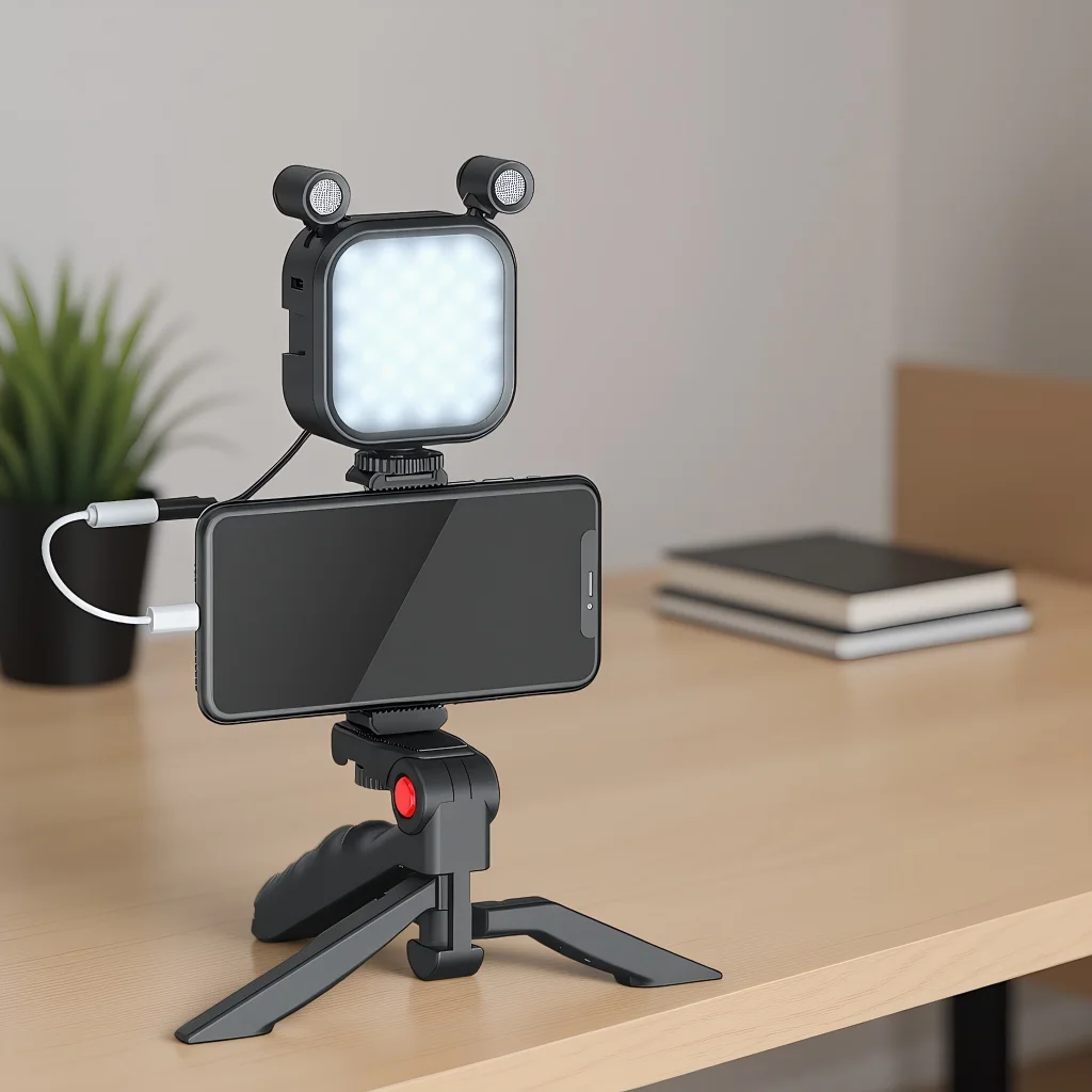 Smartphone Vlogging Kit - LED Fill Light & Monitoring Microphone for YouTube Live Recording