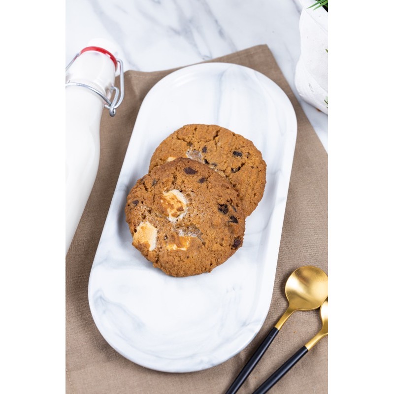Cookies yang terbuat dari bahan bahan pilihan, dengan topping cornflakes, chocolate chip dan marshmallow.