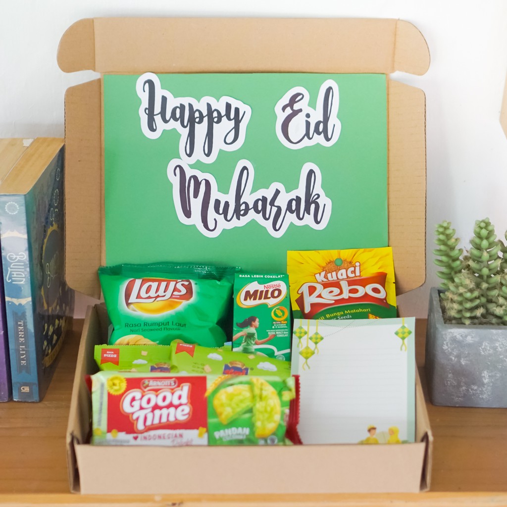Produk ini cocok untuk kamu yang ingin membagikan kasih sayang dengan snack box spesial di momen ramadhan maupun idul fitri yang tentunya bisa kamu request tulisan dll.