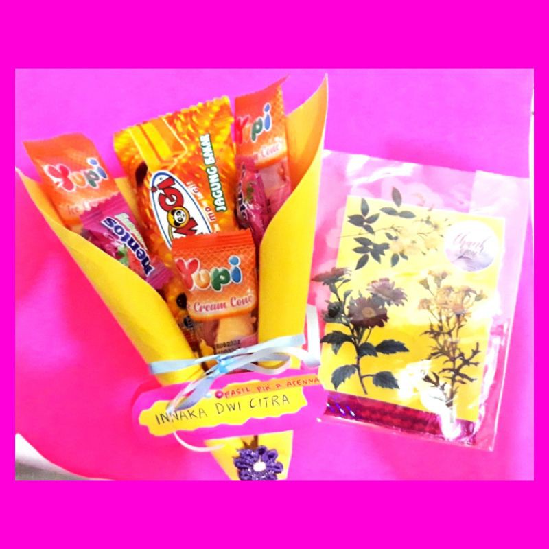 isi terdiri 3-4 mini Snack include dekorasi bucket sesuai event kamu dan free 1 sticker tumblr