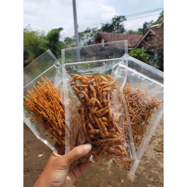 Makanan ringan yang bercita rasa pedas dengan bumbu yang melimpah