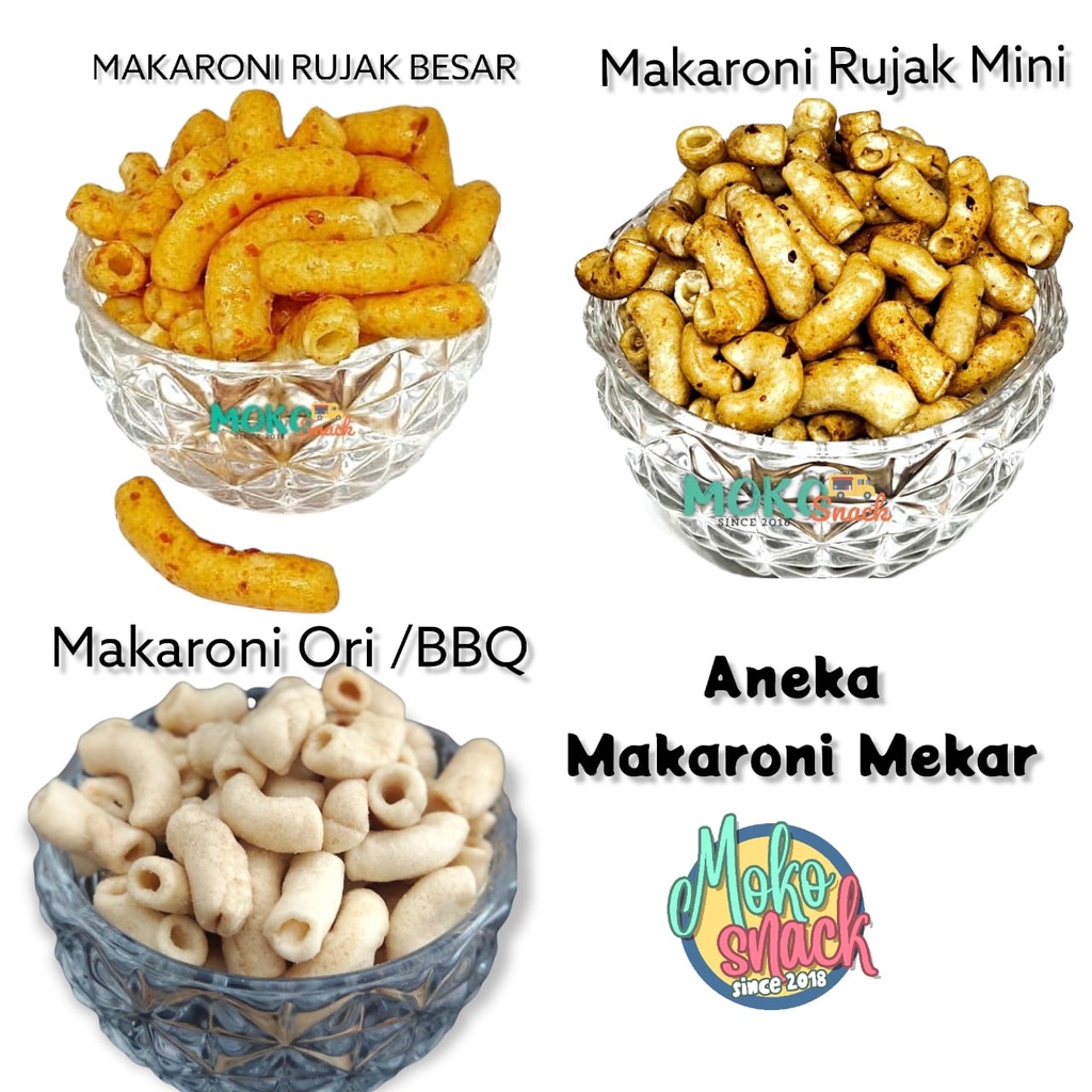 Snack Kiloan Makaroni Mekar Original, Rujak Besar, Rujak Mini 250 gr