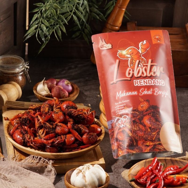 Dengan cita rasa gurih dan pedas yang khas, cemilan rendang lobster air tawar ini pasti akan memanjakan lidah Anda. Lobster rendang ini telah mendapatkan sertifikasi halal dan terdaftar P-IRT, memastikan bahwa produk ini memenuhi standar keamanan dan kehalalan.