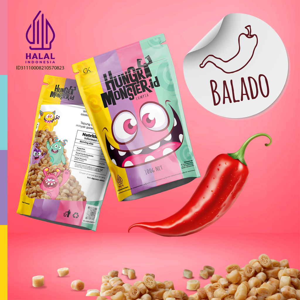 Hadirkan sensasi pedas manis khas Indonesia dengan Hungry Monster Rasa Balado! Camilan lumpia kering ini memadukan kerenyahan yang sempurna dengan bumbu balado yang kaya rempah. Setiap gigitan membawa kelezatan pedas yang pas untuk menemani waktu santai atau menjadi teman saat bekerja. Diproduksi dengan standar tinggi dan bersertifikat halal, Hungry Monster Rasa Balado siap menjadi pilihan camilan favorit bagi pecinta rasa pedas. Yuk, coba sekarang!