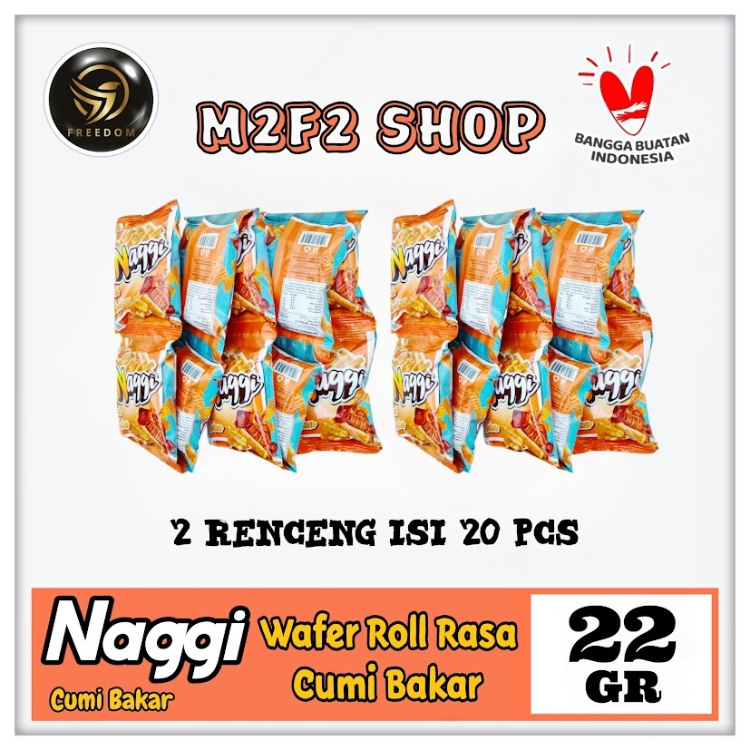 Snack Naggi Wafer Roll Rasa Cumi Bakar Sachet - 22 gr (Kemasan 2 Renceng)